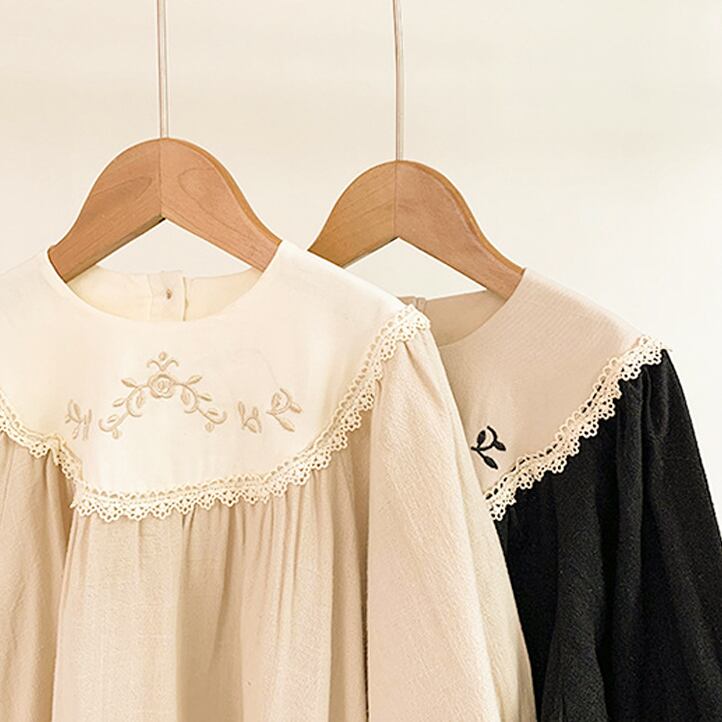 キュートで可愛らしい刺繍ミニ丈ワンピース